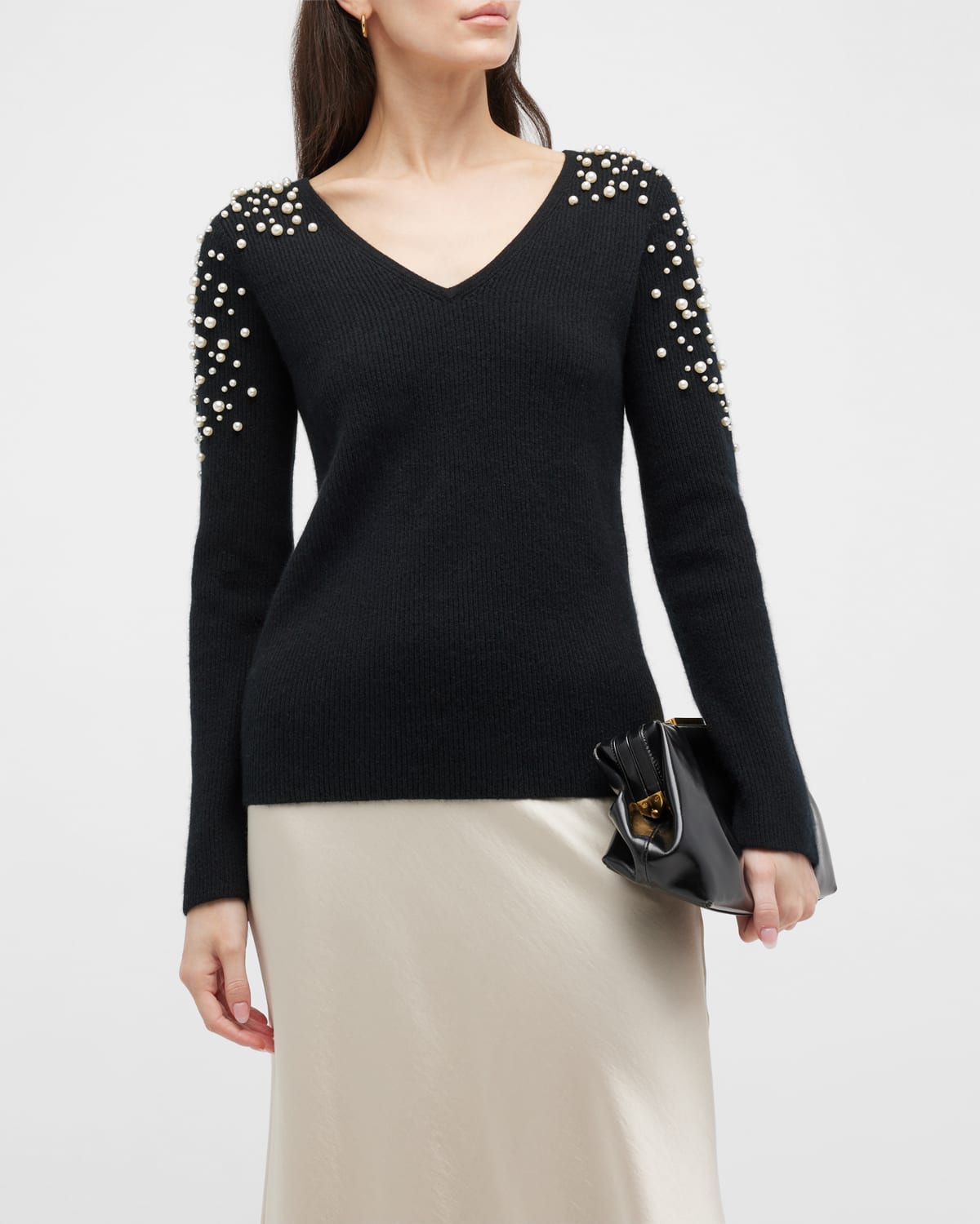 Pearl Embellished Cashmere Sweater. Available at Neiman Marcus